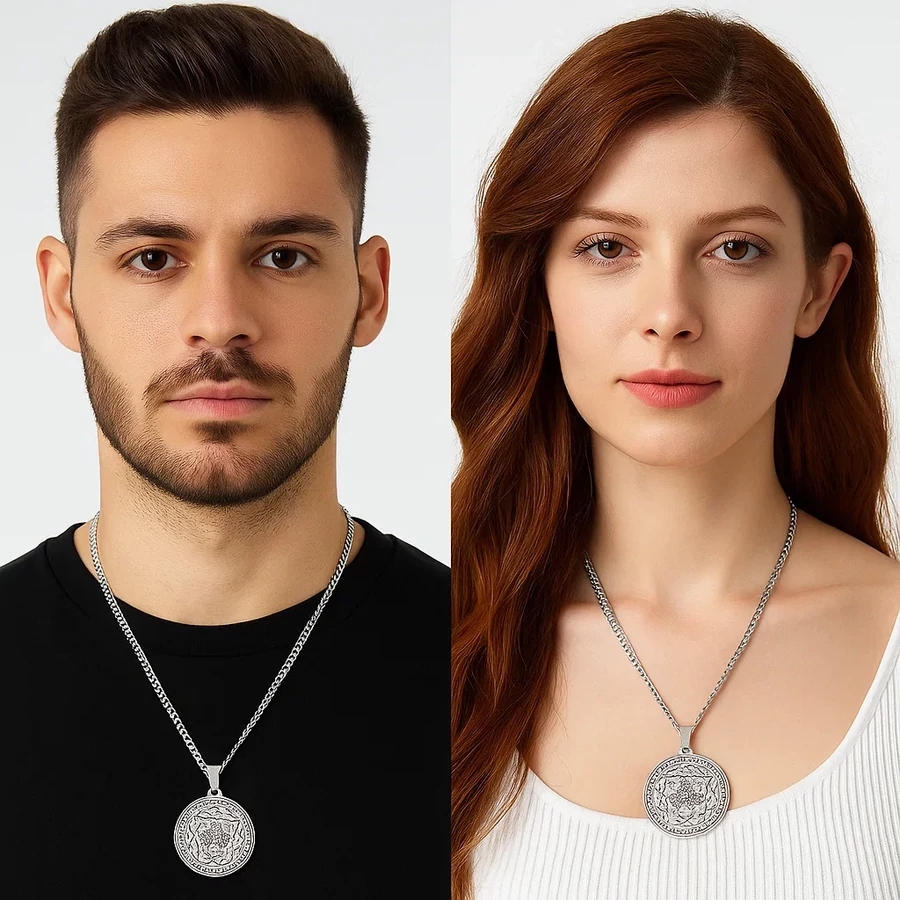 Az ezüst színű acél "A Hét Arkangyal" nyaklánc ideális választás azok számára, akik egyszerre keresnek stílusos kiegészítőt és lelki támaszt. A 3 cm-es kör alakú medálra gravírozott arkangyalnevek – mint Rafael, Uriel vagy Haniel – a spirituális útmutatás és a védelem szimbólumai.