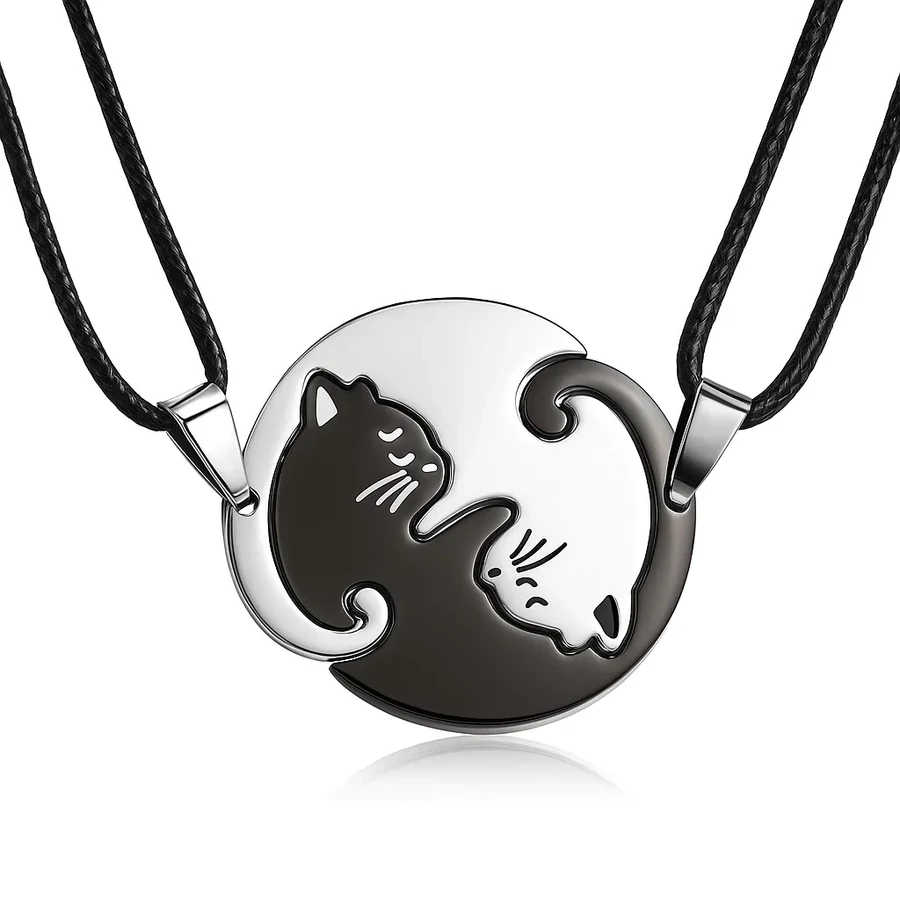 Ez a acél bújó cicák páros nyaklánc különleges módon fejezi ki az összetartozást és szeretetet. A két nyaklánc egy-egy cicás medált rejt, amelyek játékos módon illeszkednek egymáshoz – pont, ahogy ti is kiegészítitek egymást. Ideális választás mindennapi viseletre és romantikus pillanatok megörökítésére is.