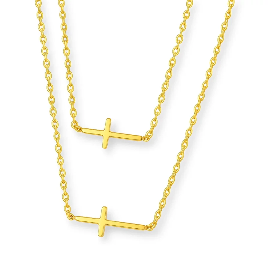 A dupla kereszt motívum a hit, az erő és a spiritualitás szimbóluma, amely egyaránt hordoz klasszikus és modern üzenetet. Ez a nyaklánc önmagában is megállja a helyét, de más ékszerekkel kombinálva is jól mutat, legyen szó akár hétköznapi viseletről, akár ünnepi alkalmakról.