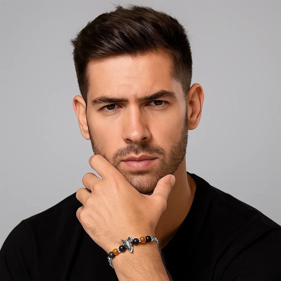 Ez a karkötő igazán sokoldalú, könnyen kombinálható más férfias ékszerekkel, legyen szó akár laza, akár elegáns megjelenésről. Az állítható méret (18-21 cm) biztosítja, hogy kényelmesen illeszkedjen minden csuklóra. Nézd meg kínálatunk további férfi karkötőit, ha még több karakteres darabot szeretnél felfedezni.