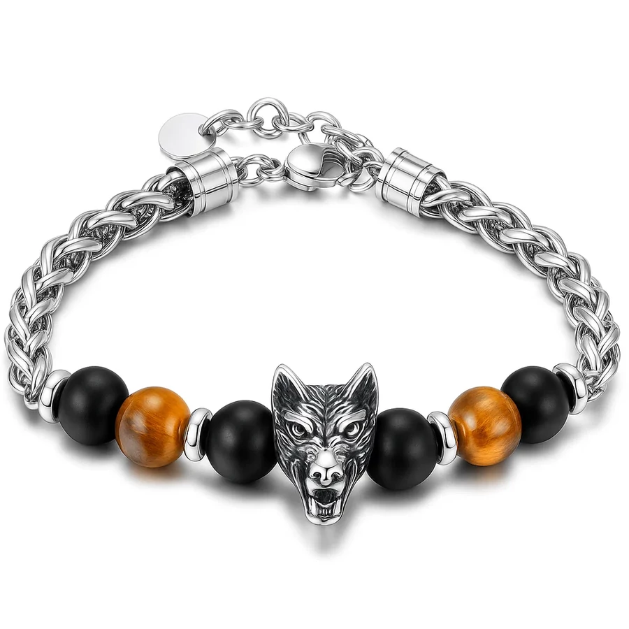 Az acél farkas karkötő olyan különleges kiegészítő, amely a farkas ősi szimbólumán keresztül a bátorságot, szabadságot és védelmet testesíti meg. A karkötő gömbökkel díszített, amelyek finoman egészítik ki a farkas motívumot, így egy igazán egyedi és erőt sugárzó ékszert kapsz. Ez a darab tökéletesen tükrözi viselője karakterét és személyiségét.