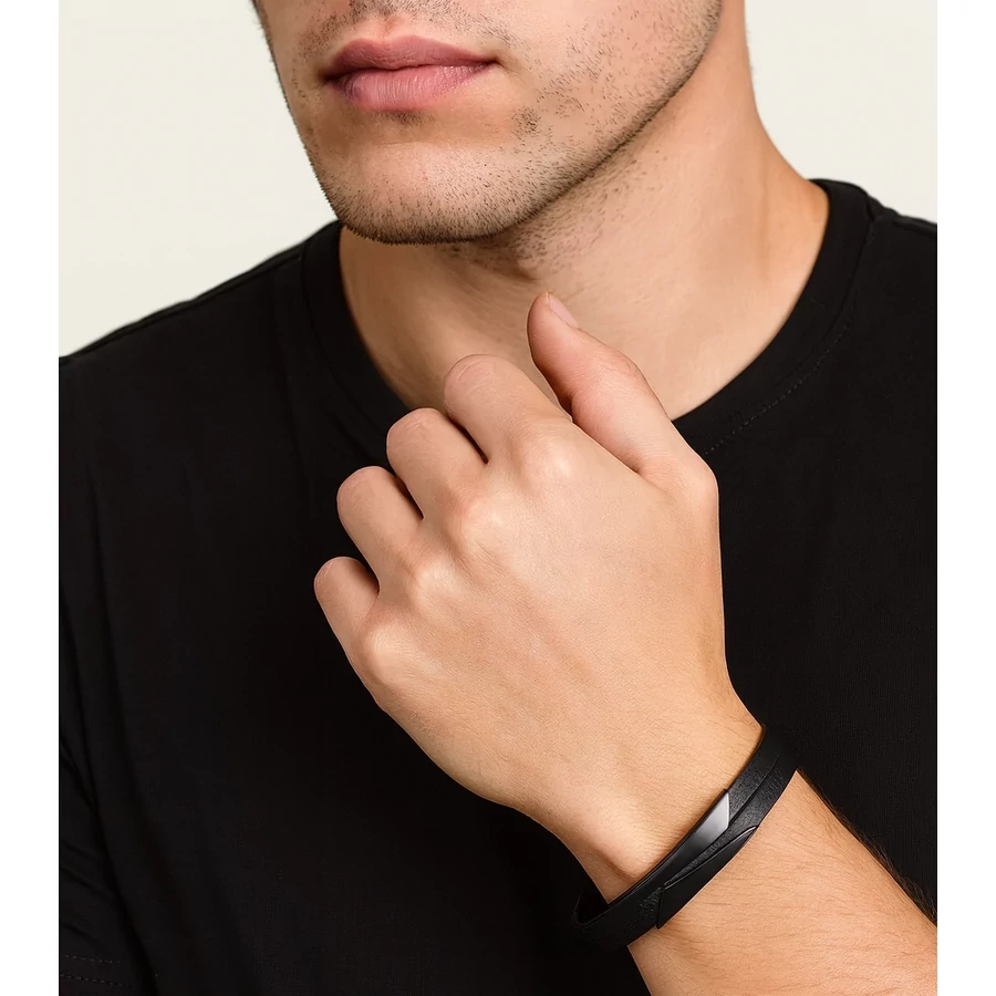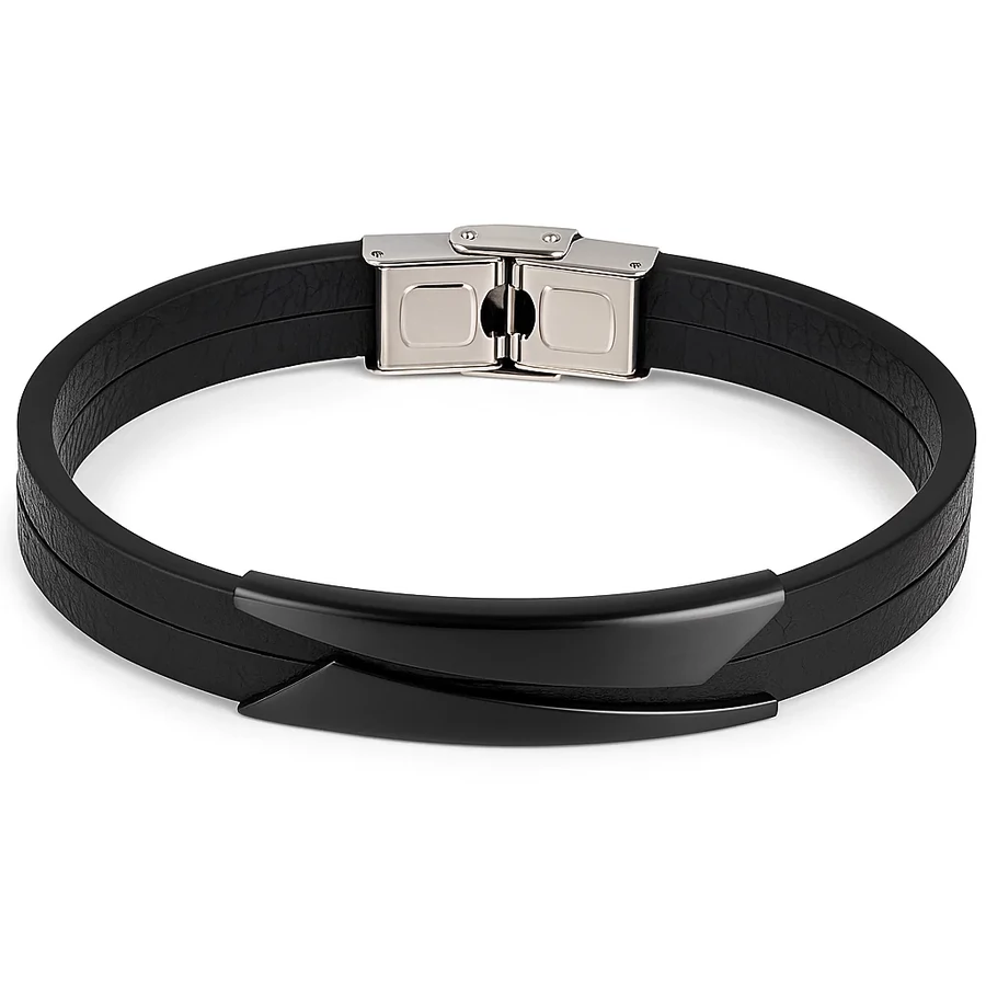 Ez a acél fémlapos férfi karkötő kiváló választás minden férfinak, aki kedveli a letisztult, de karakteres ékszereket. A fekete színű ívelt fémlap elegánsan simul a csuklóra, miközben a kontrasztos ezüst színű csatok még hangsúlyosabbá teszik a megjelenést. A stílusos dizájn minden öltözékhez hozzáad valami pluszt.
