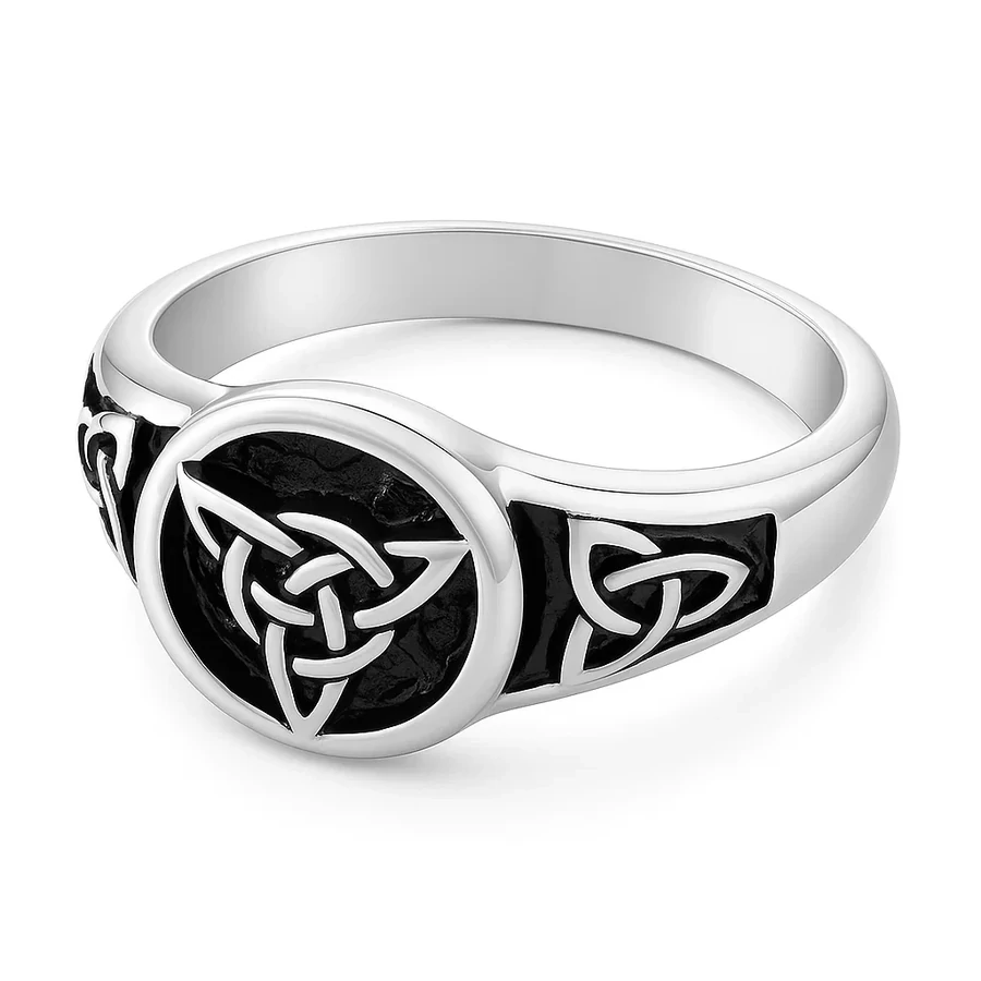 A kelta motívumokkal díszített gyűrű modern és hagyományos stíluselemeket ötvöz, melyekkel bármilyen öltözékhez könnyen illeszkedik. Egyedi és jelentéssel teli darab, amely a viselője karakterét hangsúlyozza, miközben a tradíciók tiszteletét is kifejezi.