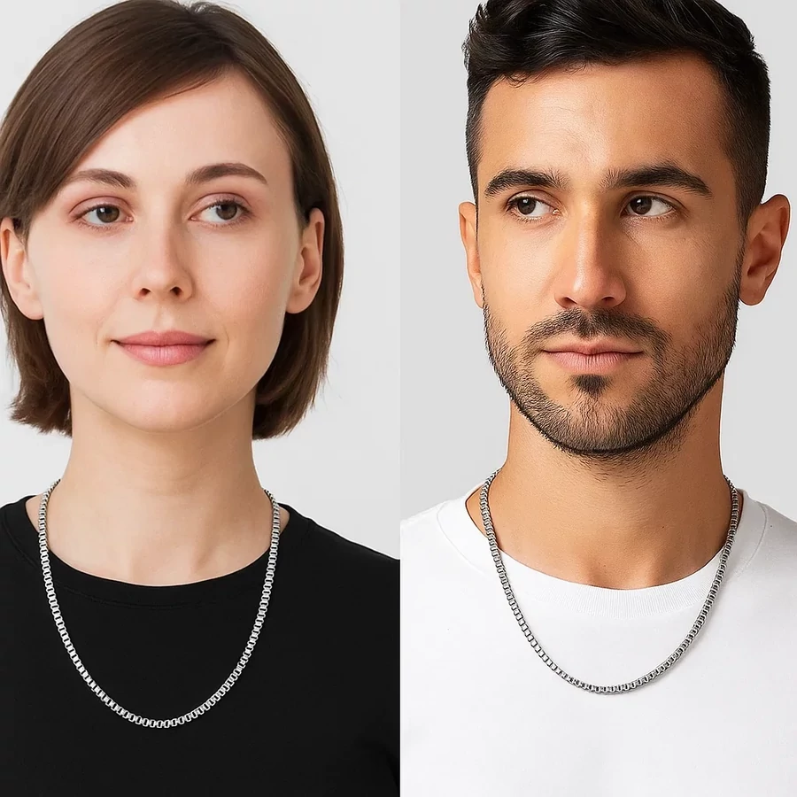 Az acél kocka lánc modern, geometriai kialakítása különleges megjelenést biztosít viselőjének. A láncot kocka alakú láncszemek díszítik, amelyek egyediséget és letisztultságot sugároznak. A kiváló minőségű rozsdamentes acél anyag gondoskodik arról, hogy a nyaklánc hosszú éveken át megőrizze eredeti fényét és kifinomult stílusát.