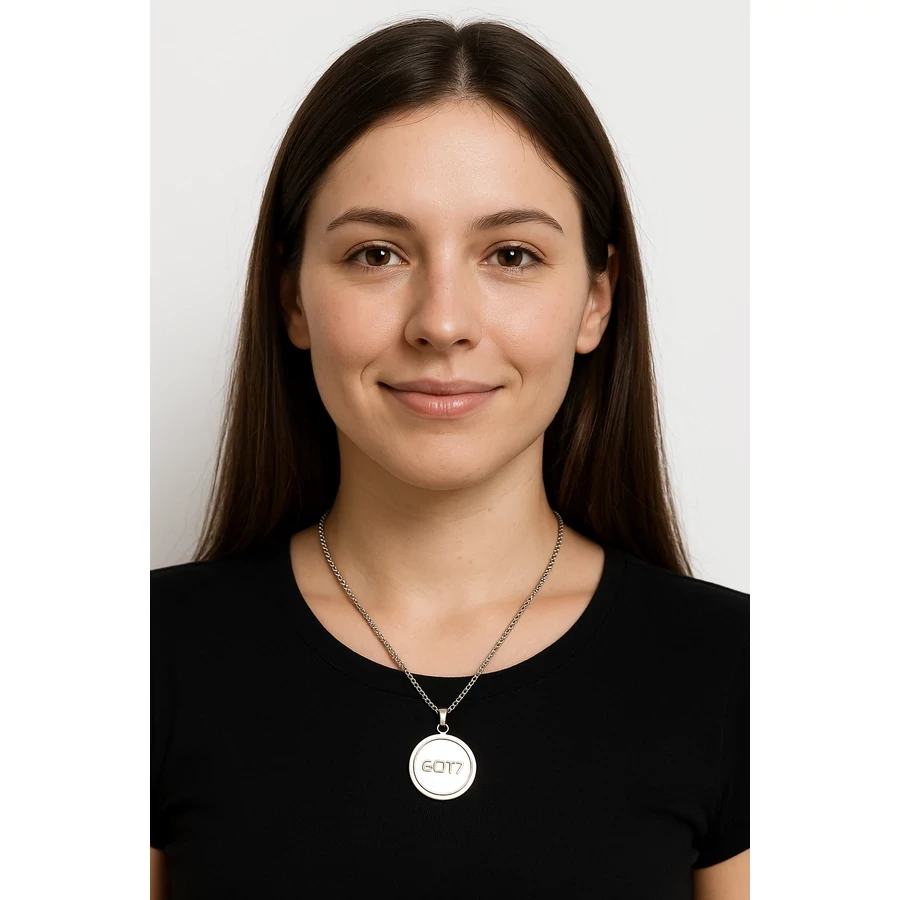 A nyaklánc rozsdamentes acélból készült, amely garantálja az időtállóságot és a hosszan tartó fényt. A 62 cm-es lánchossz és a 25 mm-es medálméret kényelmes, mégis jól látható kiegészítőt eredményez, amely nem fakul, nem rozsdásodik.