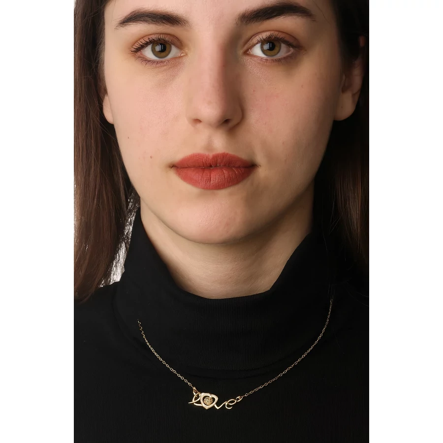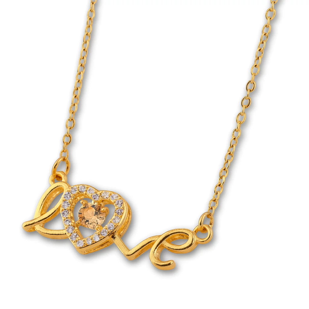 A rozsdamentes acélból készült LOVE strasszköves szíves nyaklánc tökéletes választás romantikus ajándéknak. Strasszköves medál szív formában, tartós viseletre.